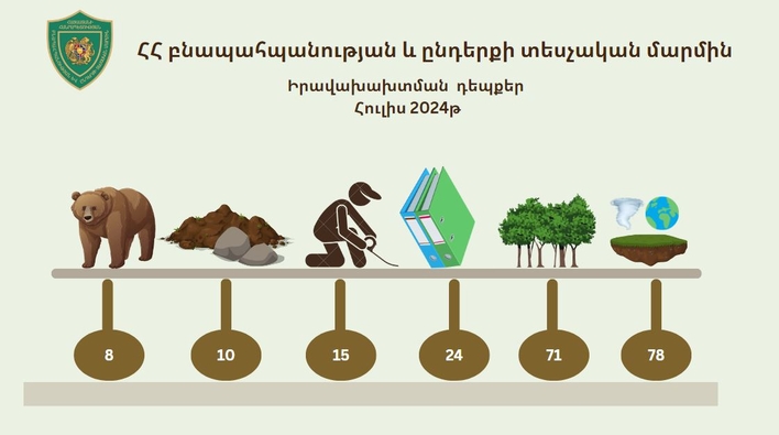 ՀՀ բնապահպանության և ընդերքի տեսչական մարմնի 2024 թվականի հուլիս ամսվա ընթացքում կատարված աշխատանքների վերաբերյալ ՀՀ օրենսդրությամբ սահմանված դեպքերում և կարգով իրականացված վերահսկողական և/կամ օրենքով սահմանված այլ գործառույթների իրակ