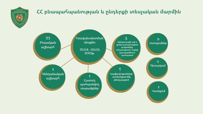 ՀՀ բնապահպանության և ընդերքի տեսչական մարմնի կողմից 2023 թվականի ապրիլի 25-ից մայիսի 5-ն ընկած ժամանակահատվածում կատարված աշխատանքների վերաբերյալ Իրականացված վերահսկողության ընթացքում արձանագրվել է 29 դեպք, որից 23 դեպքով