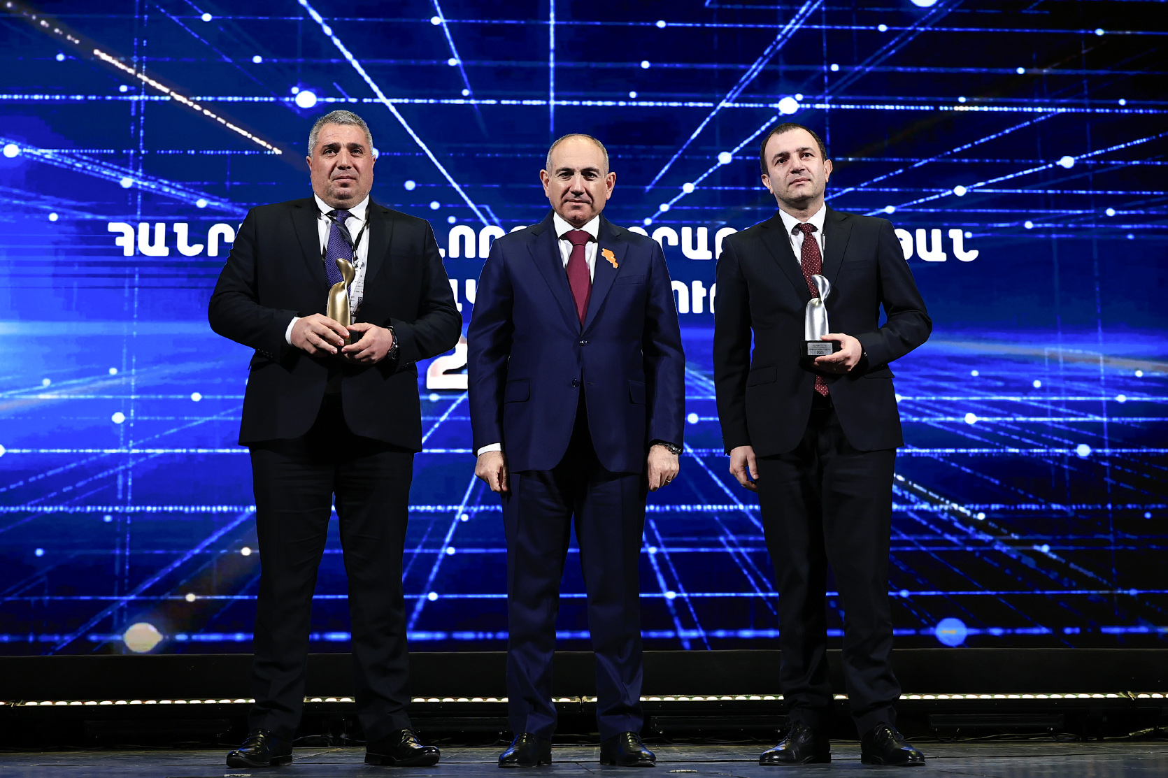 Վարչապետ Նիկոլ Փաշինյանը մրցանակ է հանձնել Բնապահպանության և ընդերքի տեսչական մարմնի ղեկավար Հովհաննես Մարտիրոսյանին ու Ընդերքի վերահսկողության վարչության պետ Վահան Գրիգորյանին։