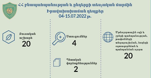 ՀՀ բնապահպանության և ընդերքի տեսչական մարմնի կողմից 2022 թվականի հուլիսի 4-ից 15-ն ընկած ժամանակահատվածում կատարված աշխատանքների վերաբերյալ