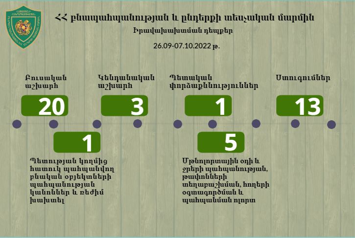 ՀՀ բնապահպանության և ընդերքի տեսչական մարմնի կողմից 2022 թվականի սեպտեմբերի 26-ից հոկտեմբերի 7-ն ընկած ժամանակահատվածում կատարված աշխատանքների վերաբերյալ