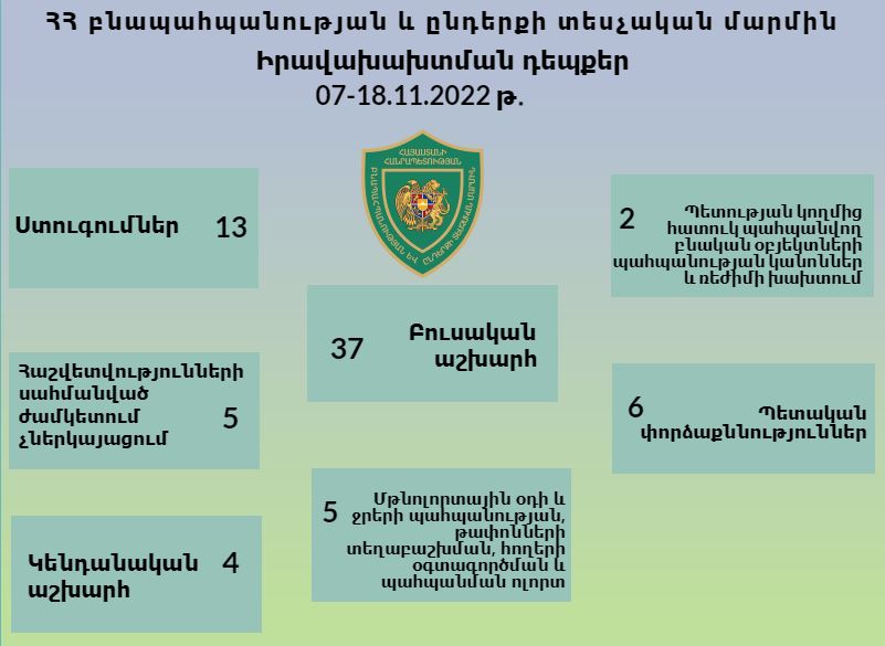 ՀՀ բնապահպանության և ընդերքի տեսչական մարմնի կողմից 2022 թվականի նոյեմբերի 7-ից 18-ն ընկած ժամանակահատվածում կատարված աշխատանքների վերաբերյալ