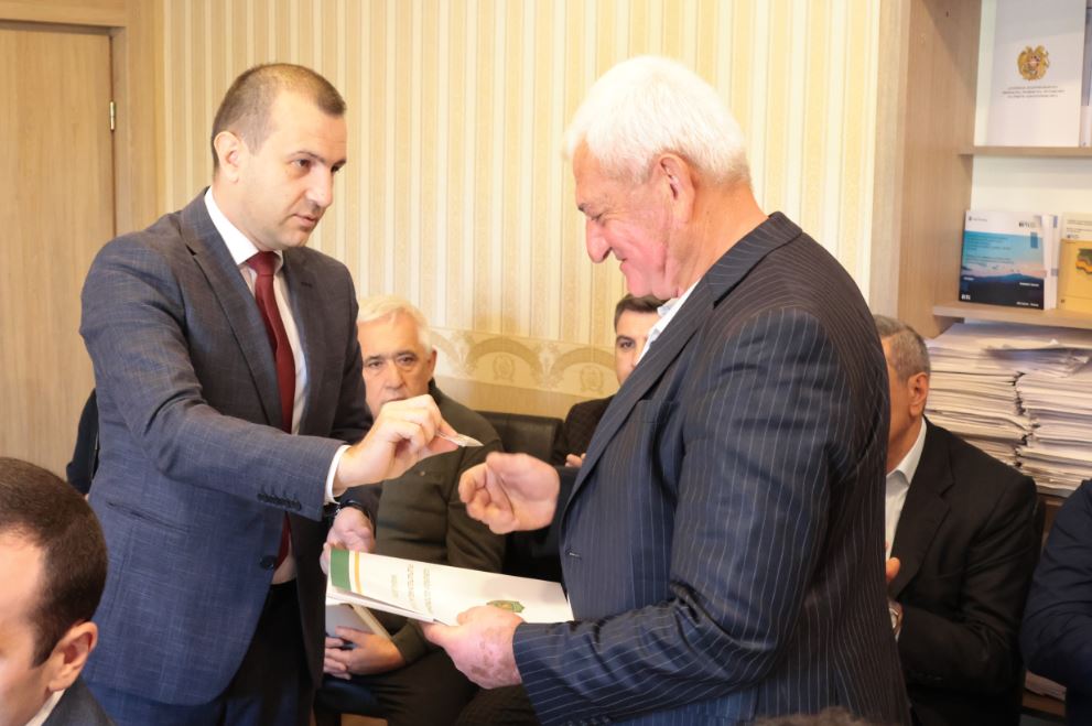 Բնապահպանության և ընդերքի տեսչական մարմնի Արագածոտնի տարածքային բաժնի գլխավոր պետական տեսուչ Լևոն Թադևոսյանը կենսաթոշակի անցնելու կապակցությամբ, ինչպես նաև երկարամյա ծառայության, ծառայողական պարտականությունների և հանձնարարականների բարեխիղճ կատարելու համար պարգևատրվել է կրծքանշանով և հուշանվերով։