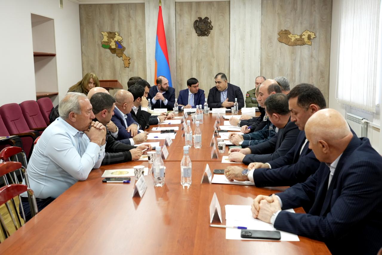 Deputy Heads of the Environmental Protection and Mining Inspection Body of the Republic of Armenia, V. Galoyan and L. Levonyan, visited Armavir Region and met with Governor Vahram Khachatryan, representatives of the regional police of the Ministry of Internal Affairs, rescue services, heads of consolidated communities, and sectoral officials.