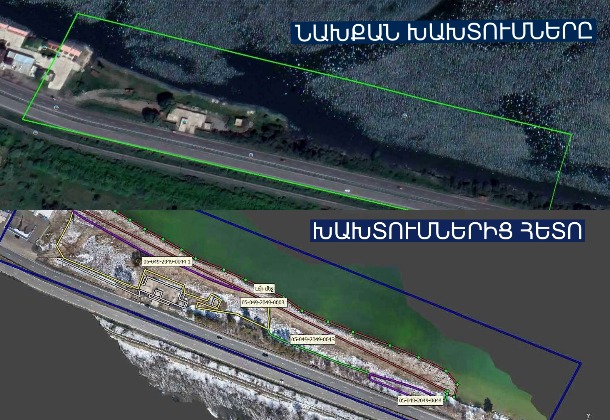 In the territory of the former “Tapan” restaurant, located on the right side of the Sevan–Tsovagyugh–Dilijan highway, a lessee, carried out unauthorized leveling and stone-filling works outside the area under his lease – namely, on 765 sq. m of shoreline and 3,851 sq. m of Sevan Lake water area.