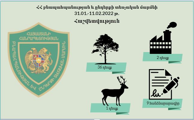 ՀՀ բնապահպանության և ընդերքի տեսչական մարմնի կողմից 2022 թվականի հունվարի 31-ից փետրվարի 11-ն ընկած ժամանակահատվածում կատարված աշխատանքների վերաբերյալ